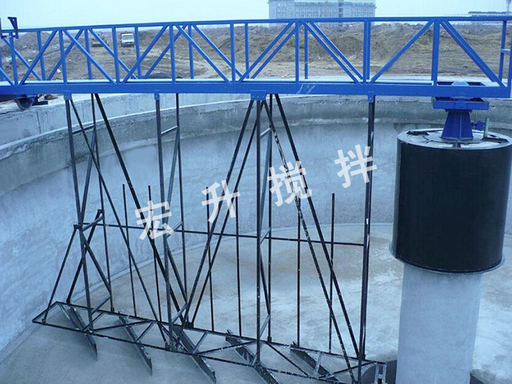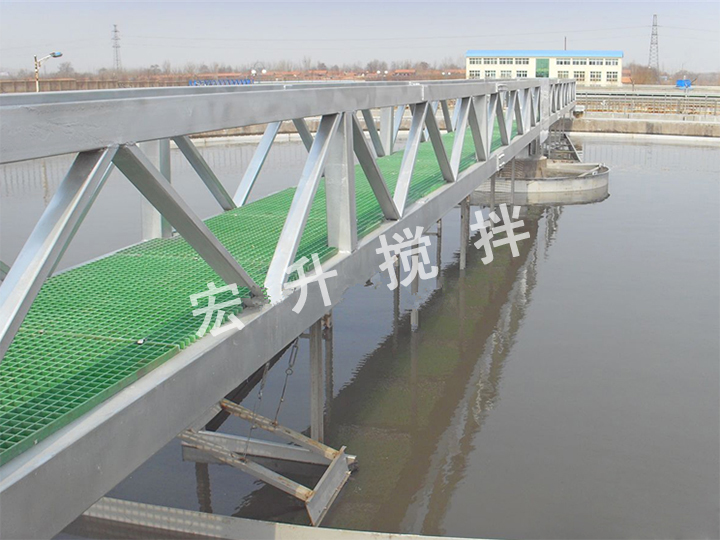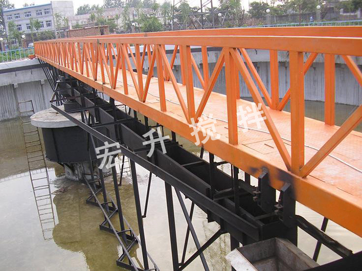 周邊傳動(dòng)刮泥機(jī),主要有鋼梁,溢流堰、傳動(dòng)裝置、穩(wěn)流筒、中心泥罐、排泥槽、刮板、刮泥裝置、浮渣收集和排出設(shè)施,輸電輸氣裝置。