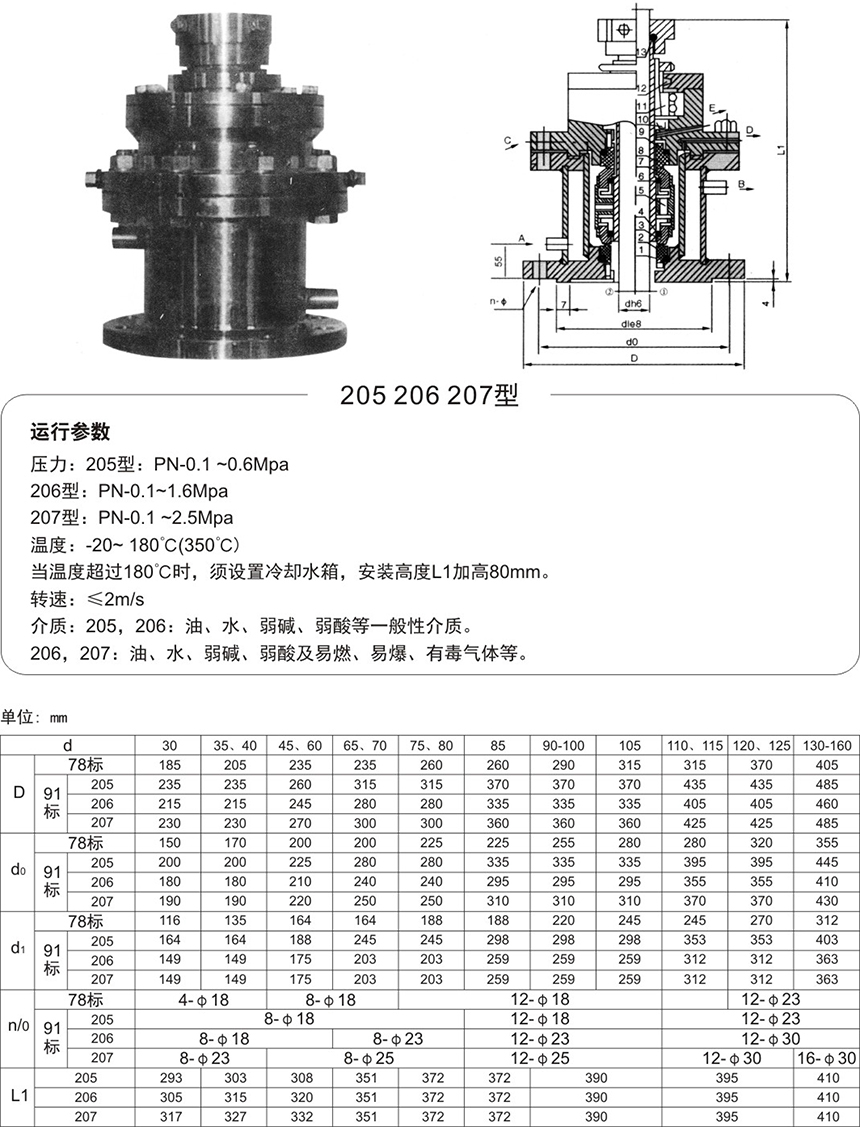 為改善授拌軸支承穩定性,降低密封腔的工作溫度,提高使用性能,可根據攪拌軸直徑d及對應的標準系列,選用對應的CT調溫器可與機封做成一體。安裝尺寸與對應的機械密封一致。